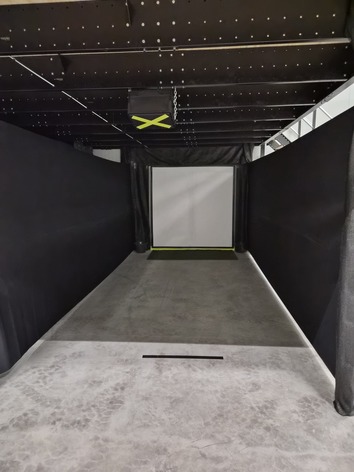 Projiziert auf eine Leinwand, welche mit Farbmarkierungsmunition beschossen werden kann.