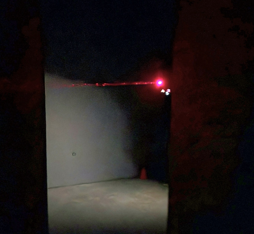 Projiziert auf eine Leinwand, welche mit Farbmarkierungsmunition beschossen werden kann.